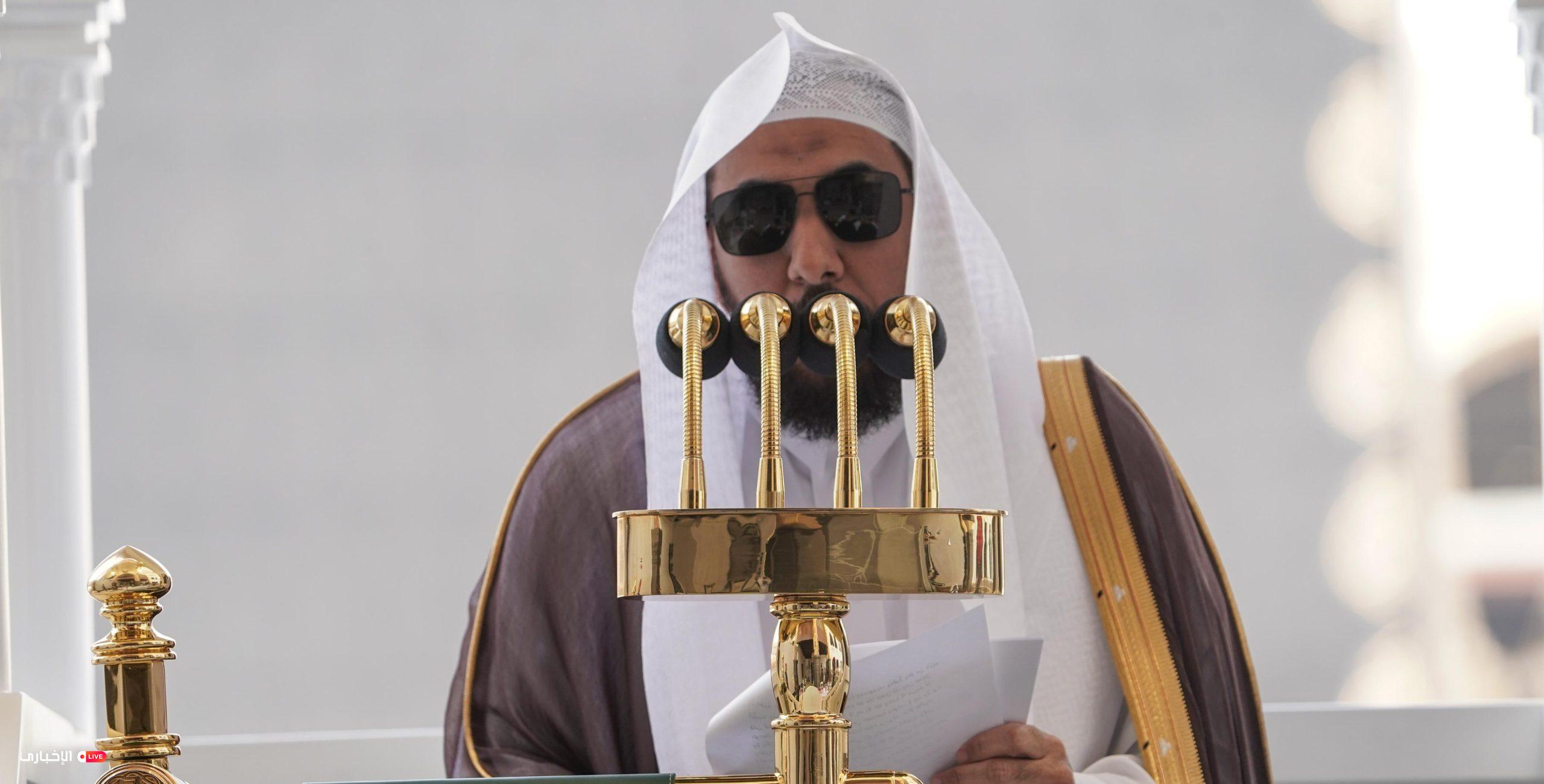 وقال في خطبته التي ألقاها اليوم، بالمسجد الحرام: إن أنفع الكلام وعظًا وأحلاه على التكرار لفظًا كلام من أنزل القرآن تبيانًا، وتولاه حفظًا، ومن ذلكم سورة من سور القرآن الكريم، وهي ثلاث آيات وأربع عشرة كلمة، وثمان وستون حرفًا، نزلت بعد سورة الشرح، تمثل منهجًا إسلاميًا متكاملًا، وترسم نظامًا شاملًا للبشر، وتنقذ الإنسان من رَدغة الخسران، وتبين وظيفته التي ربّى النبي صلى الله عليه وعلى آله وسلم تسليمًا أمته عليها، وهي سورة العصر. أعوذ بالله من الشيطان الرجيم بسم الله الرحمن الرحيم: (وَالْعَصْرِ إِنَّ الْإِنْسَانَ لَفِي خُسْرٍ إِلَّا الَّذِينَ آمَنُوا وَعَمِلُوا الصَّالِحَاتِ وَتَوَاصَوْا بِالْحَقِّ وَتَوَاصَوْا بِالصَّبْرِ)، أقسم الخالق سبحانه وتعالى بهذا العصر، والله يقسم بما يشاء من مخلوقاته، أما العباد فليس لهم أن يقسموا إلا بالله تعالى.