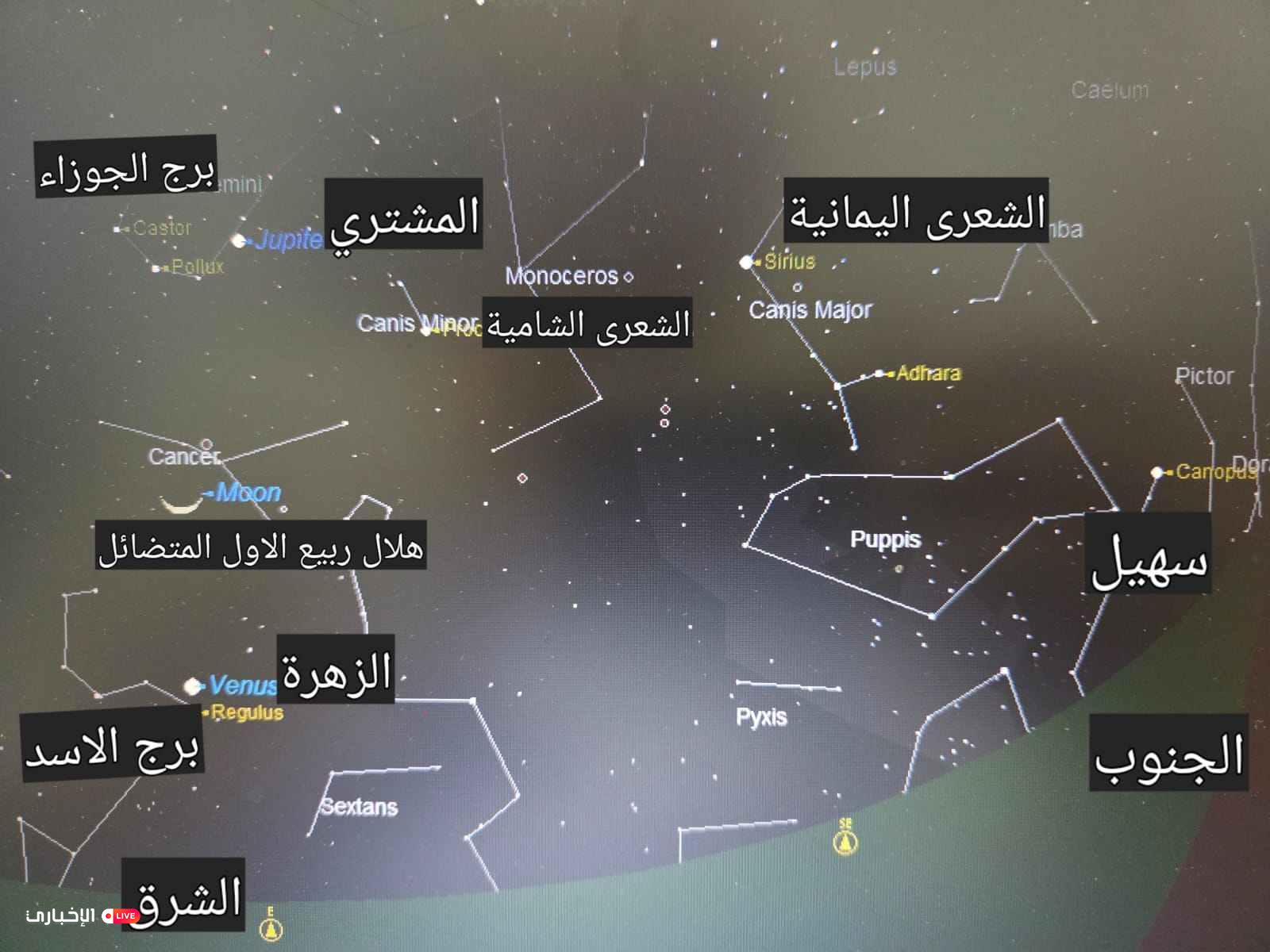 محاكاة لسماء دول الخليج العربي فجر اليوم الخميس 18 سبتمبر 2025 الموافق 26 ربيع الأول 1447 هجرية.