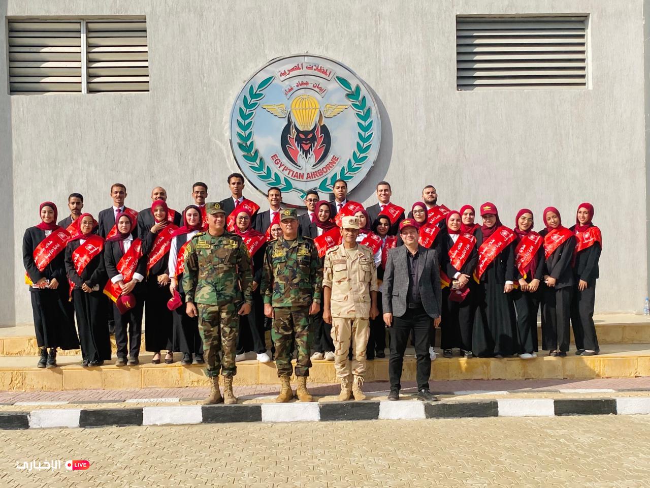بالتعاون مع قوات الدفاع الشعبي والعسكري جامعة حلوان تنظم زيارة ميدانية إلى قوات المظلات المصرية