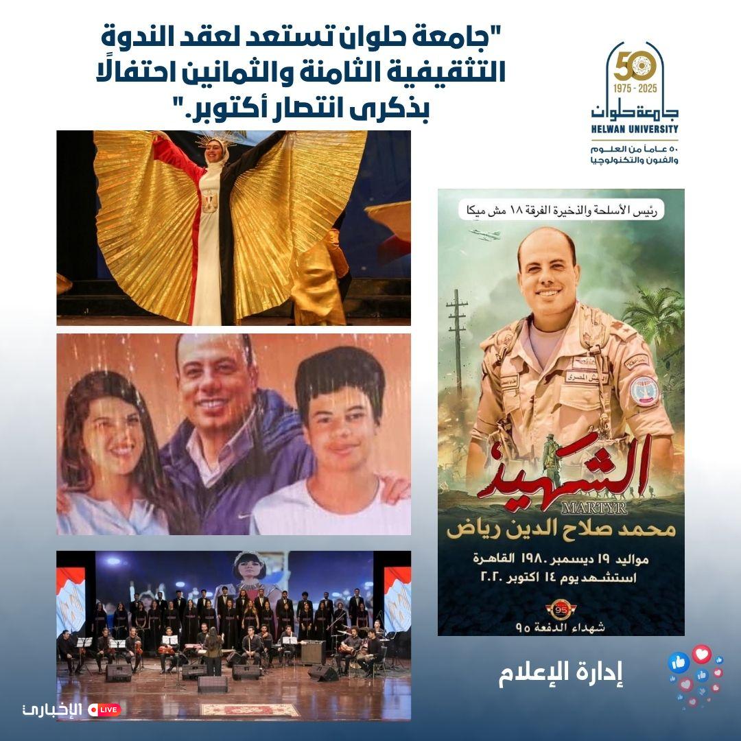 في إطار الاحتفال بالذكرى المجيدة لانتصارات أكتوبر، تستعد جامعة حلوان لعقد الندوة التثقيفية الثامنة والثمانين، والتي تنظمها قوات الدفاع الشعبي والعسكري بالتعاون مع قطاع التعليم والطلاب وإدارة التربية العسكرية بالجامعة، تحت رعاية الدكتور السيد قنديل رئيس جامعة حلوان، السيد اللواء أركان حرب هشام حسن حسني قائد قوات الدفاع الشعبي والعسكري، وريادة الدكتور حسام رفاعي نائب رئيس الجامعة لشئون التعليم والطلاب، وإشراف العقيد عماد حمدي مدير إدارة التربية العسكرية بالجامعة، وتأتي هذه الندوة في سياق حرص الدولة والجامعات المصرية على تعزيز روح الانتماء الوطني لدى الشباب، وتخليد ذكرى البطولات التي سطرها أبناء الوطن في معركة الكرامة.