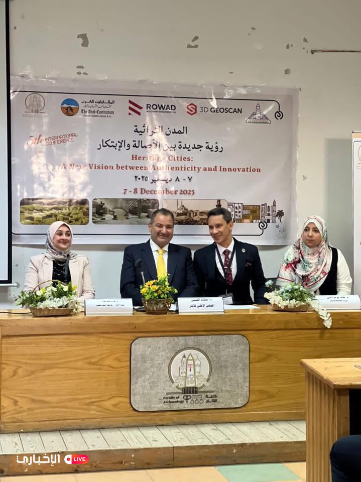 اختُتمت يوم الاثنين الموافق 8 ديسمبر 2025 فعاليات المؤتمر الدولي الخامس لكلية الآثار بجامعة عين شمس، المعنون: “المدن التراثية: رؤية جديدة بين الأصالة والابتكار”، والذي أُقيم تحت رعاية أ.د. محمد ضياء زين العابدين، رئيس الجامعة، وأ.د. أماني كامل، نائب رئيس الجامعة لشئون الدراسات العليا والبحوث، وأ.د. حسام طنطاوي، عميد الكلية ورئيس المؤتمر، أ.د. أحمد الشوكي، وكيل الكلية لشئون الدراسات العليا والبحوث ومقرر المؤتمر.