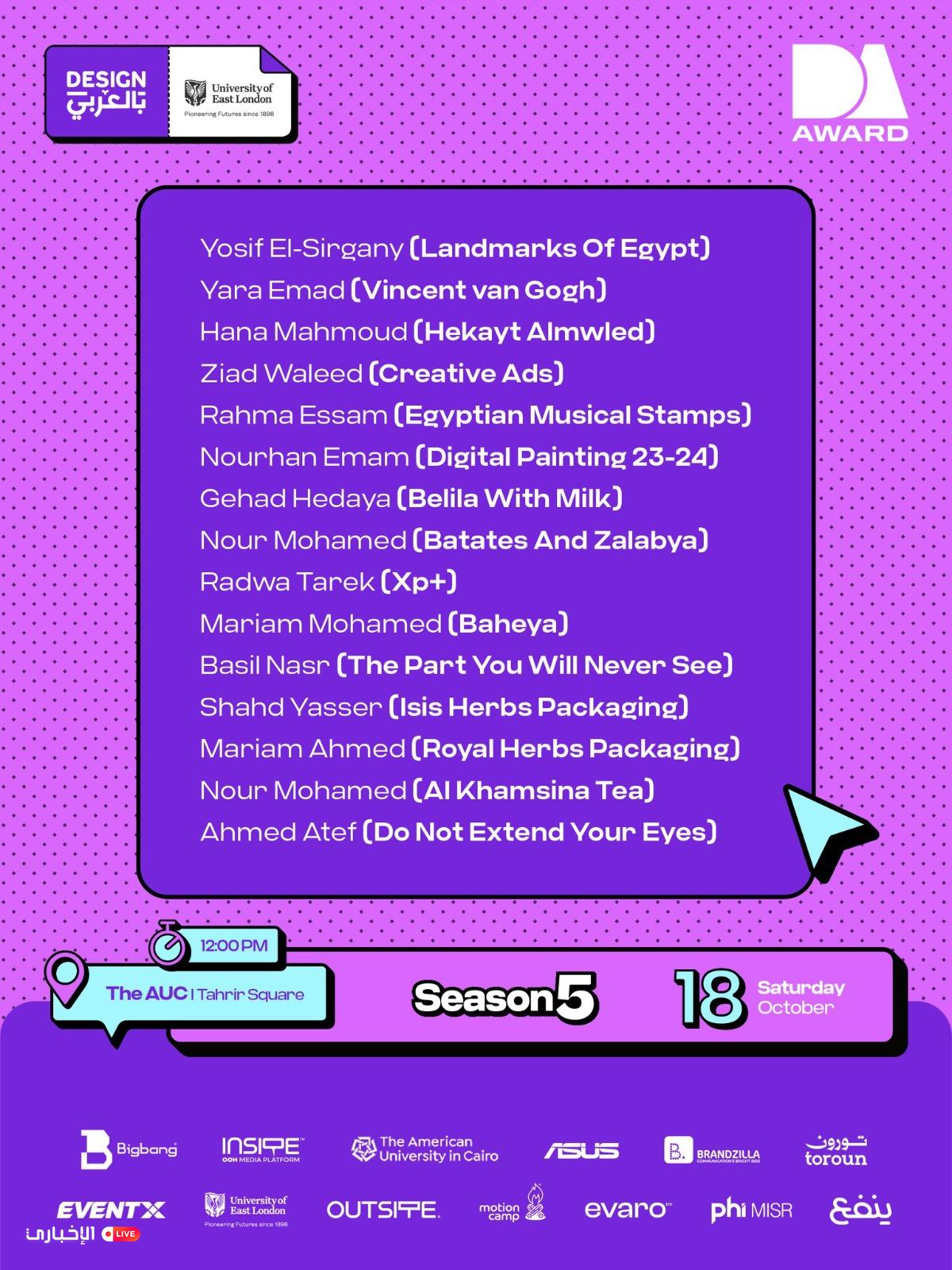 وقد جاءت مشاركات طلاب قسم الإعلان والإعلان الرقمي لتعكس تنوع الفكر والرؤية الفنية المبتكرة، حيث شارك كل من رضوى طارق قسم إعلان، وأميرة قسم إعلان، وزياد وليد الفرقة الثانية، إعلان رقمي، الذين قدموا أعمالًا عكست وعيًا فنيًا معاصرًا وقدرة على توظيف أدوات التصميم الجرافيكي في التعبير عن أفكار إبداعية ذات طابع عربي مميز.