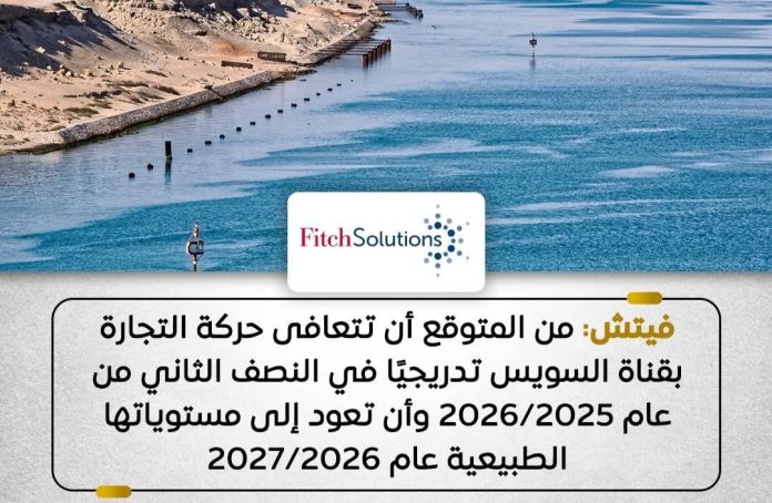 أكدت وكالة “فيتش” أن حركة التجارة بقناة السويس ستشهد تعافيًا تدريجيًا في النصف الثاني من عام 2025/2026 بعد وقف إطلاق النار في غزة، وتوقعت عودة حركة السفن بالقناة إلى مستويات ما قبل الحرب خلال عام 2026/2027.