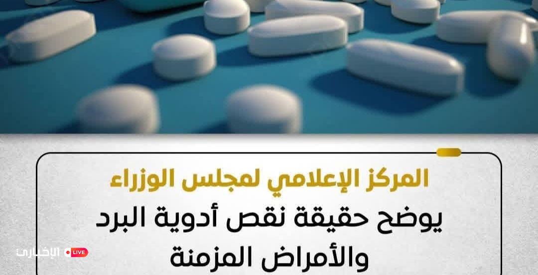 نشر المركز الإعلامي لمجلس الوزراء بيانًا عبر منصاته على مواقع التواصل الاجتماعي، أوضح من خلاله حقيقة ما تردد حول نقص أدوية البرد والأمراض المزمنة بالأسواق.