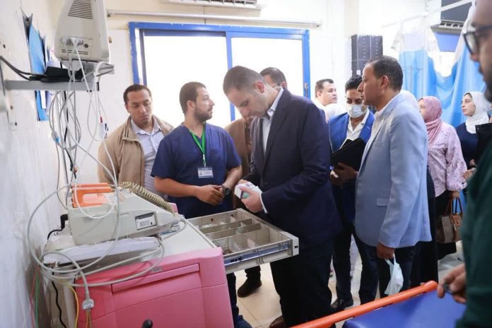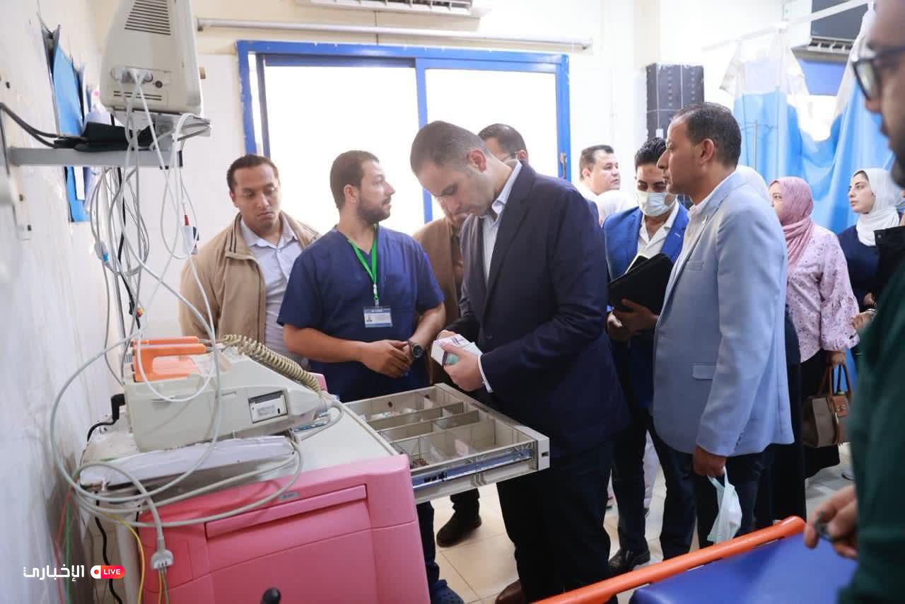 استهل نائب الوزير جولته بتفقد مستشفى مطروح العام، حيث زار أقسام الاستقبال والطوارئ للاطمئنان على جاهزية الفرق الطبية وتوافر المستلزمات وأدوية الطوارئ، والتأكد من سرعة التعامل مع الحالات الحرجة. كما شملت الجولة عيادة العقر لمتابعة توافر الأمصال، وبنك الدم للتأكد من أرصدة فصائل الدم ومشتقاتها ومراجعة آليات السحب والنقل وفق معايير السلامة. وتفقد كذلك أقسام الأشعة، والمعمل، والغسيل الكلوي، موجهاً بتيسير صرف الأدوية لمرضى الغسيل الكلوي المنتفعين بالتأمين الصحي مباشرة من المستشفى.