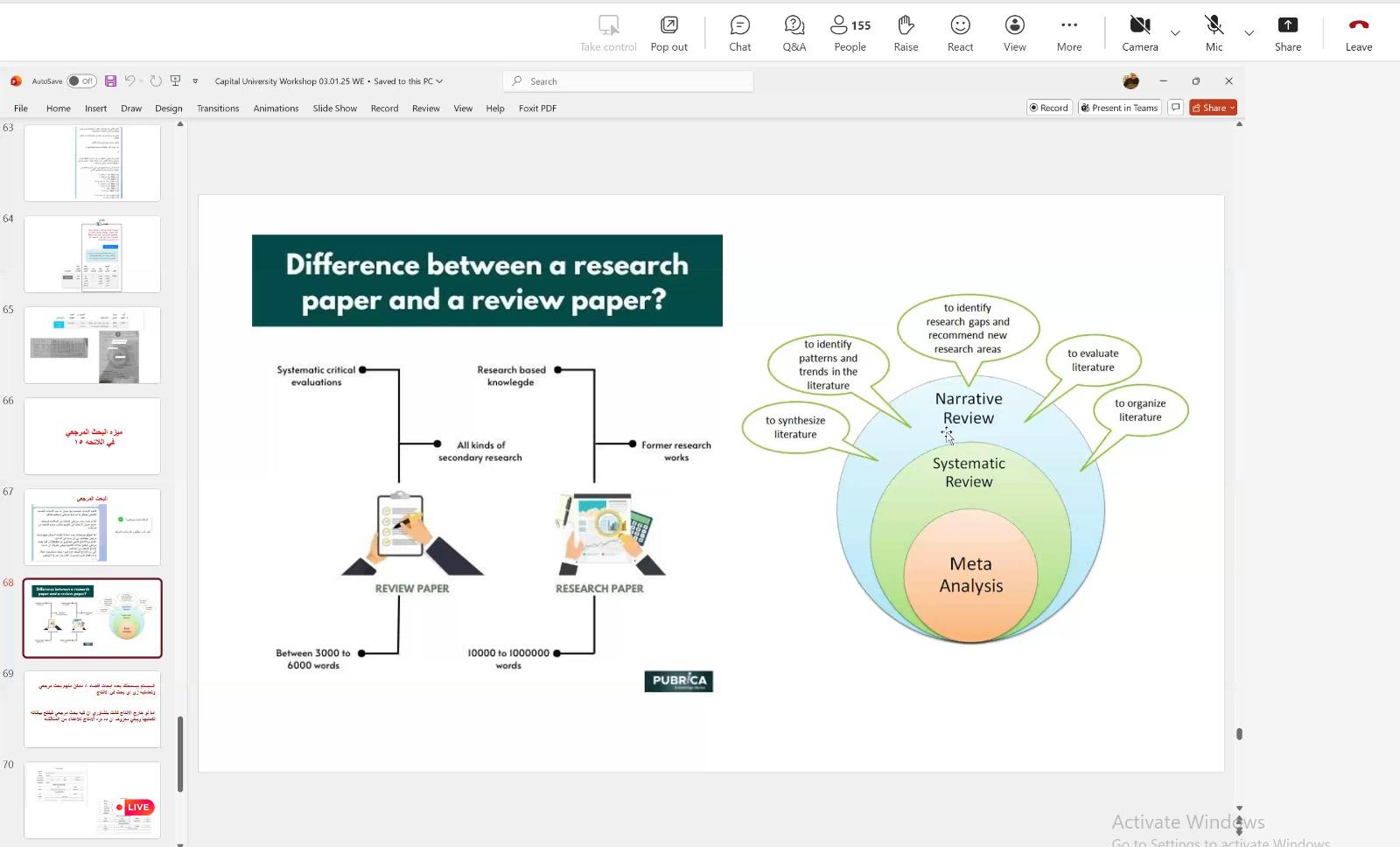 كما تناول سيادته آليات رفع نقاط الأبحاث من خلال مؤشرات الباحث المعتمدة، وشرح الضوابط الخاصة بالأبحاث المرجعية وطرق الاستفادة منها، إلى جانب توضيح شروط مسار التميز العلمي المستحدث والحالات التي يُعفى فيها المتقدم من المناقشة وفقًا للائحة الجديدة. وقد تفاعل الحضور بشكل ملحوظ مع الشرح، حيث أجاب الدكتور وئام على جميع استفسارات أعضاء هيئة التدريس وقدم أمثلة عملية تساعدهم في إعداد ملفات ترقية قوية ومتوافقة مع متطلبات اللائحة.