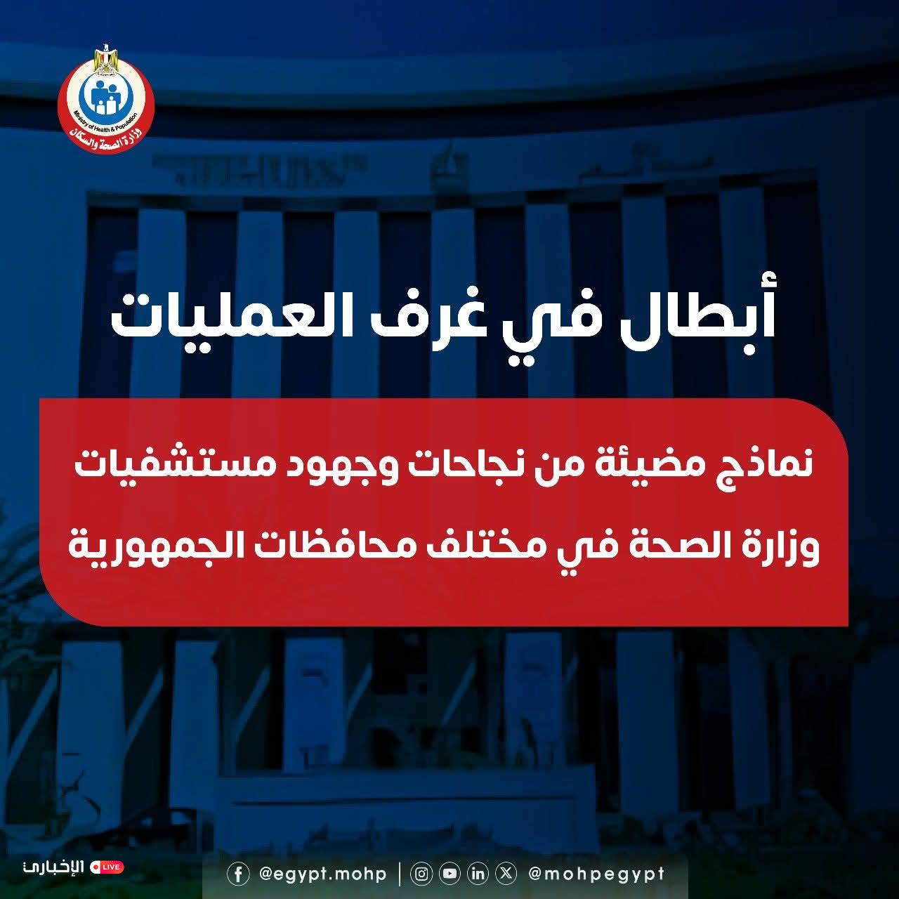 أشادت الصفحة الرسمية لوزارة الصحة والسكان المصرية، بعدد من الإنجازات الطبية التي حققها أبطال مستشفيات محافظة الشرقية، تحت عنوان «أبطال في غرف العمليات»، حيث نجحت الفرق الطبية في إجراء عمليات جراحية متقدمة وذات مهارة لحالات حرجة، منهم إجراء عملية وتثبيت كسر بمسمار نخاعي لمسنة عمرها ٦٦ عاماً رغم خطورة حالتها.