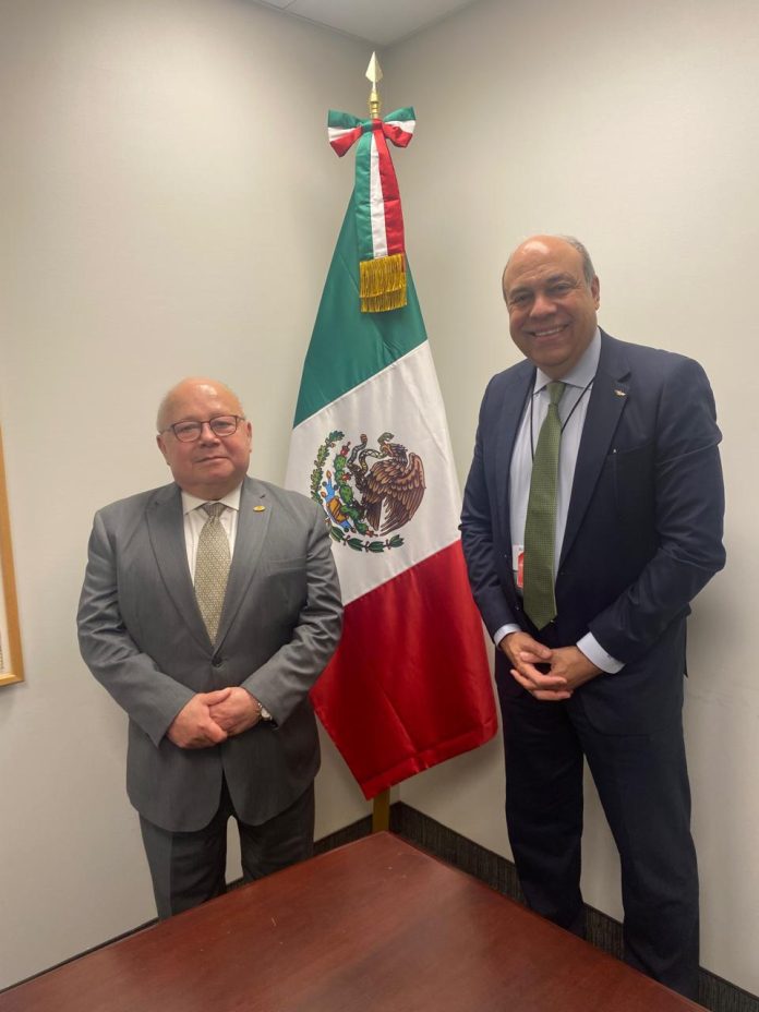 وفي لقاء آخر، اجتمع الحفني بالسيد ديونيسيو مينديث مايوراً، عميد مجلس الإيكاو، حيث تم بحث السبل الكفيلة بتعزيز السلامة والأمن الجوي وتطوير المعايير الدولية، بما يرفع من كفاءة عمل المنظمة ويواكب التطورات المتسارعة في صناعة الطيران. وقد شدد الجانبان على أهمية تنسيق الجهود الدولية لضمان الامتثال الفعّال من جميع الدول للمعايير الدولية، مع التركيز على دعم احتياجات الدول النامية وتمكينها من الوفاء بالتزاماتها بشكل مستدام.