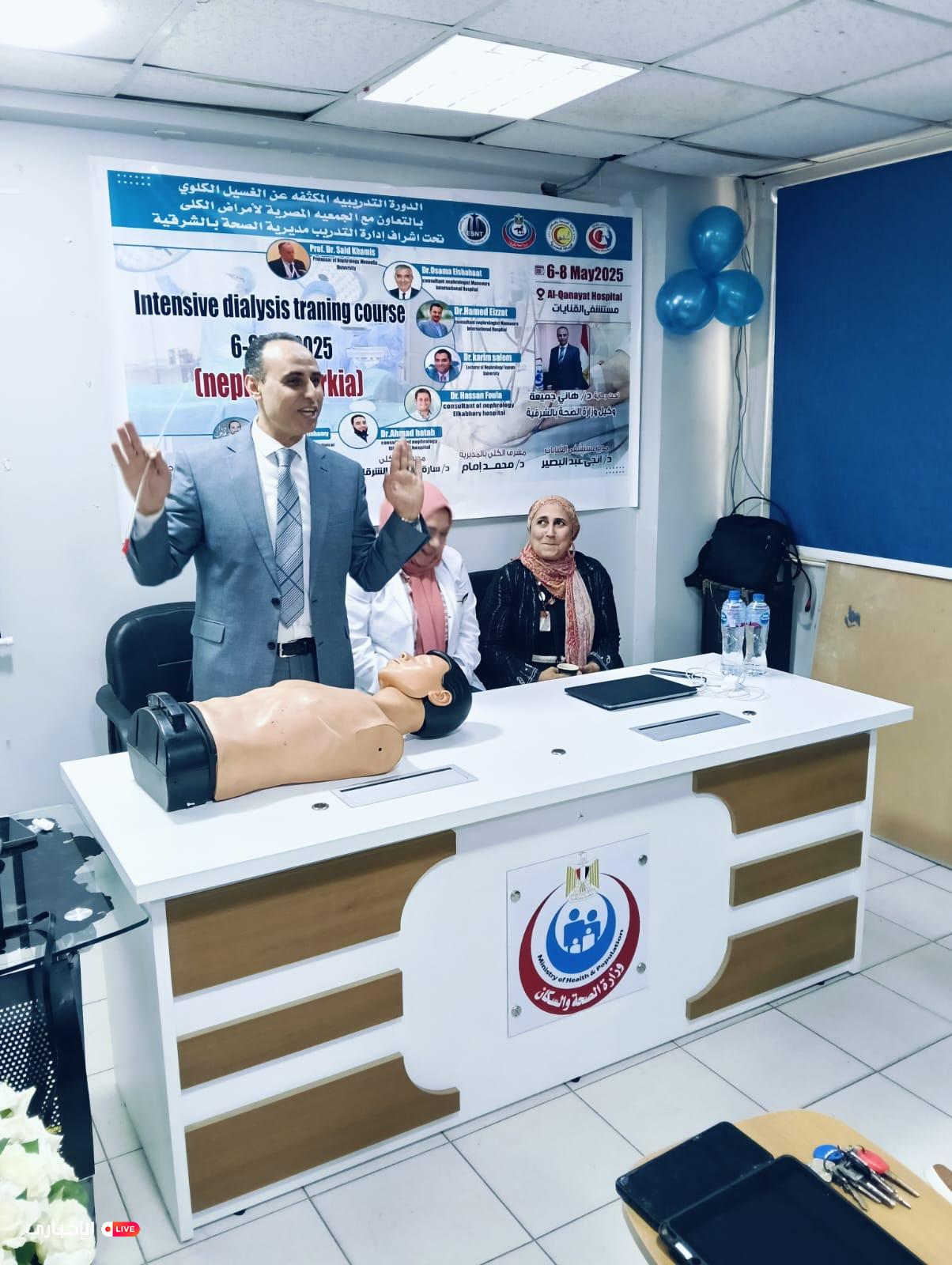 وأكد الدكتور هاني جميعة خلال كلمته على أهمية هذه الدورة النوعية في تطوير الأداء داخل وحدات الغسيل الكلوي، والارتقاء بجودة الخدمة المقدمة لمرضى الفشل الكلوي، مشيراً إلى أن التدريب المستمر يعد أحد أهم ركائز تحسين الرعاية الصحية، لا سيما في التخصصات الدقيقة مثل أمراض الكلى، التي تتطلب مواكبة مستمرة لأحدث الأساليب والبروتوكولات العالمية في التعامل مع مرضى الغسيل الدموي والبريتوني، مؤكداً أن المديرية تعمل جاهدة على توفير الدعم الكامل للأطقم الطبية والتمريضية من أجل تقديم رعاية صحية تليق بمواطني محافظة الشرقية.