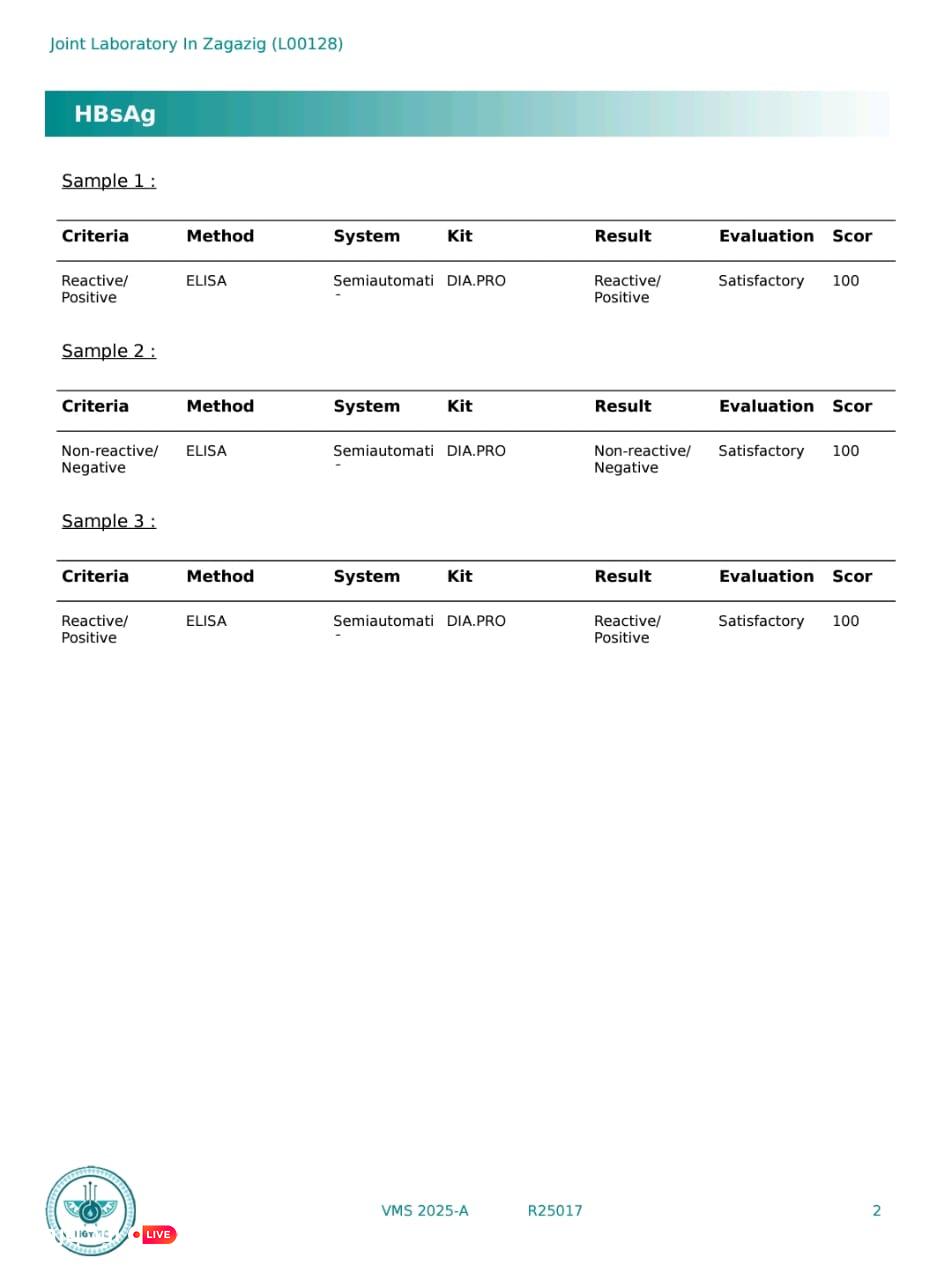 وأشار الأستاذ محمود عبدالفتاح مدير الإعلام والعلاقات العامة بالمديرية إلى أن نتائج التقييم لهذا العام أظهرت تحقيق نسبة ١٠٠٪ في جميع عينات الفيروسات (B – C – نقص المناعة)، وذلك ضمن خطة الوزارة ومشاركة المعمل الإقليمى المشترك فى برنامج ضبط الجودة الخارجية لقسم الفيروسات، والذي بدأ في يوليو ٢٠٢٤، وتم خلالها تنفيذ ٣ دورات على التوالي خلال هذا العام، وجاءت النتائج مطابقة بنسبة ١٠٠% خلال الثلاث دورات.