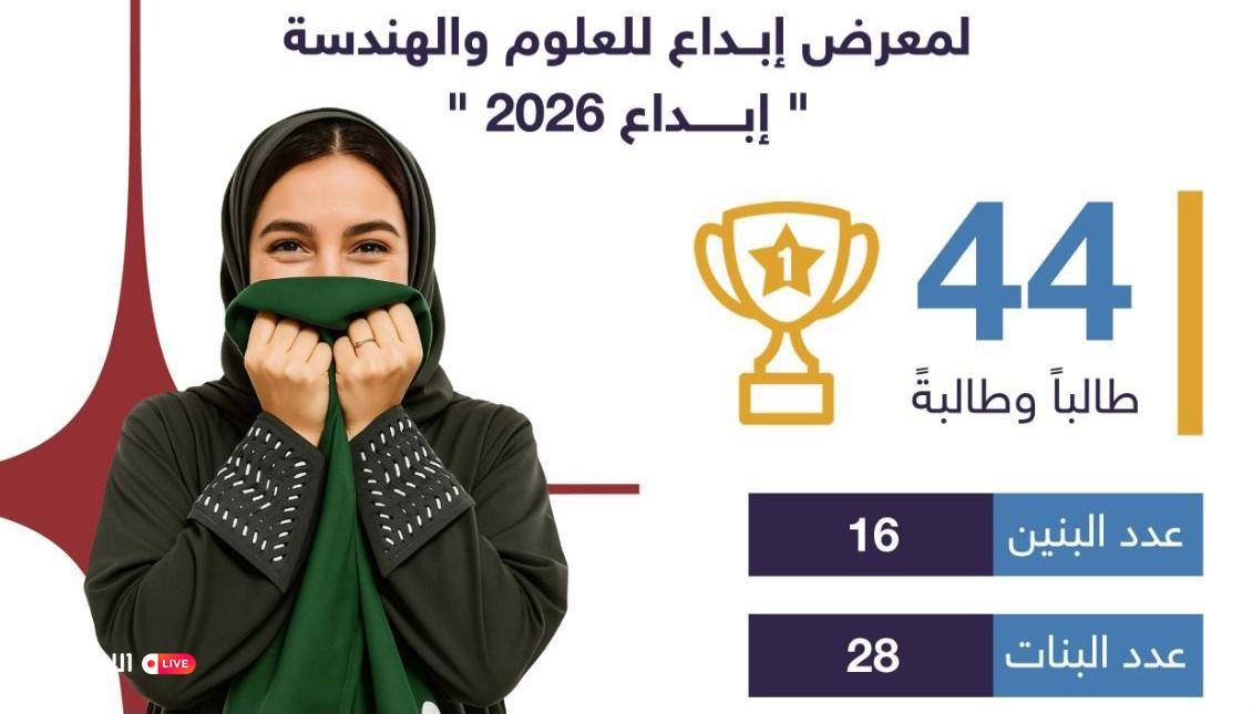 تأهل 44 طالبًا وطالبة من 27 مدرسة بإدارة تعليم الرياض للمشاركة في معرض إبداع للعلوم والهندسة “إبداع 2026”. هنأ المدير العام للتعليم بمنطقة الرياض، الأستاذ الدكتور نايف بن عابد الزارع، الطلاب والطالبات، وأثنى على جهود إدارات المدارس والكوادر التعليمية والتعاون بين المدرسة والأسرة. متمنيًا للمتأهلين تحقيق النجاح والتميز في المعرض.